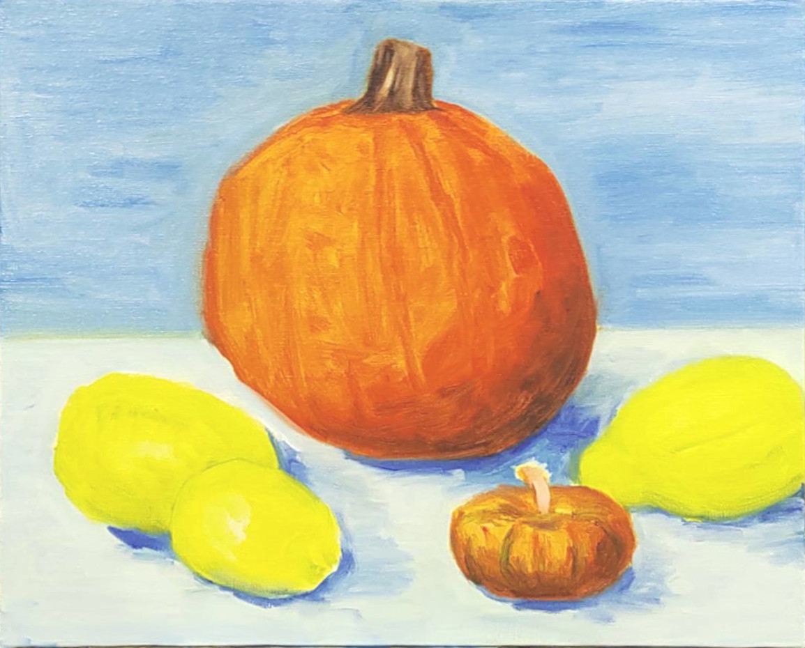 11月9日の教室から:果物とカボチャを描く