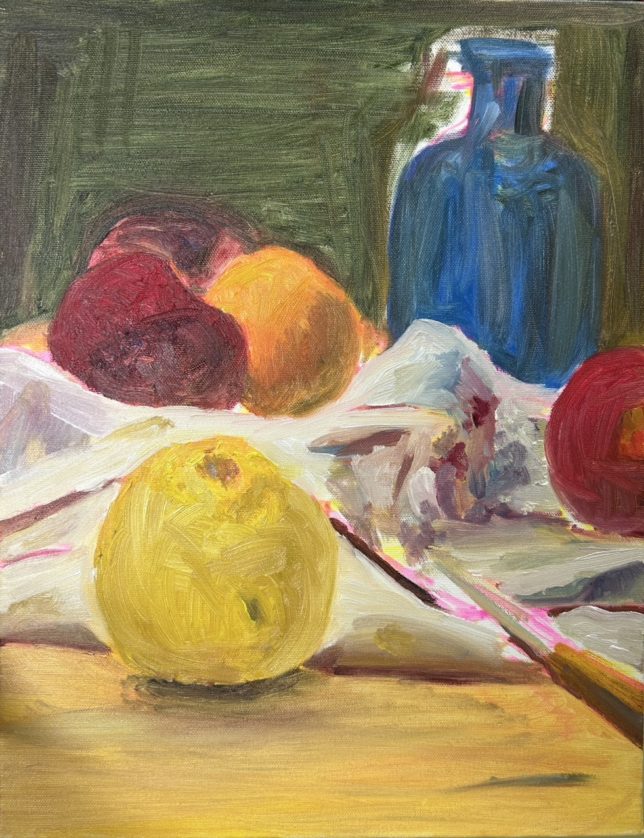 セザンヌ風の果物のモチーフを描きました。
