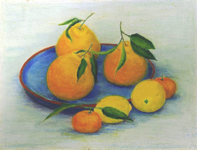 F6号のスケッチブックに、オイルパステルで。