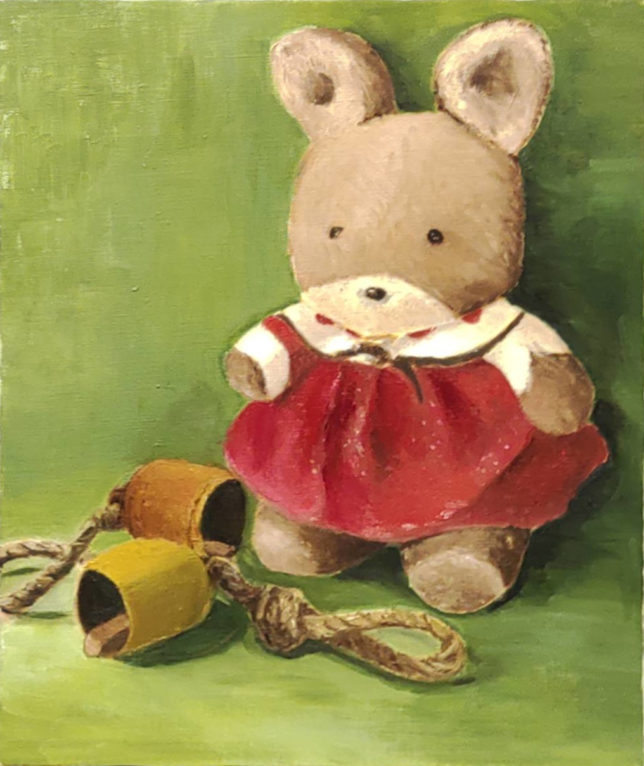 F6号のキャンバスに、オイルパステルで。