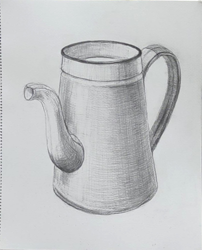 8月17日の教室から:玉ねぎのモチーフとポットのデッサン