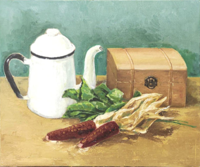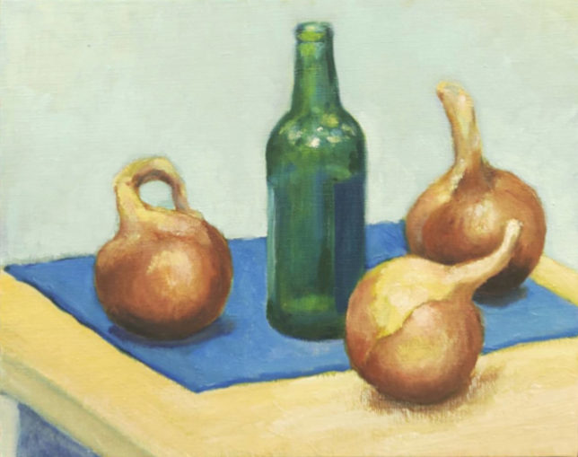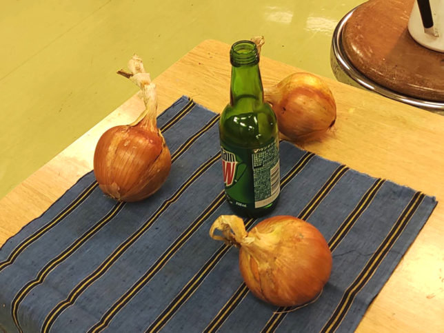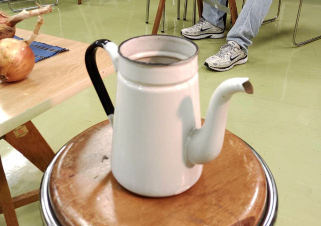 8月17日の教室から:玉ねぎのモチーフとポットのデッサン